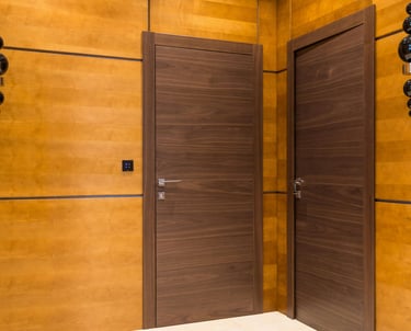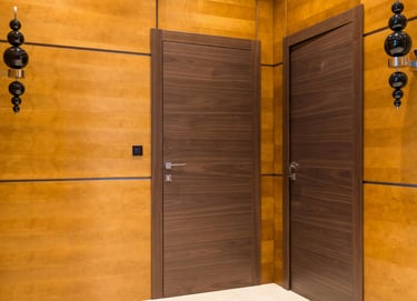 Portes sur mesure : battantes, coulissantes, pliantes, avec inserts de verre, de métal, ou moulures décoratives.