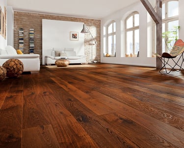 Revêtements bois : parquets, lambris, habillages muraux ou plafonds, pour créer une atmosphère chaleureuse et raffinée.