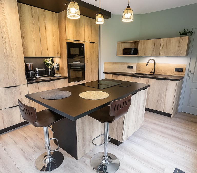 Cuisines sur mesure (placards, plans de travail, ilots).